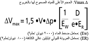 - بواسطة معادلة Vmax.Δ يجري حساب الحجم الاعلى للمياه المسموح لها بالخروج اذا كانت (=Vt Vmax.Δ) اذن تكون التجربة ناجحة.