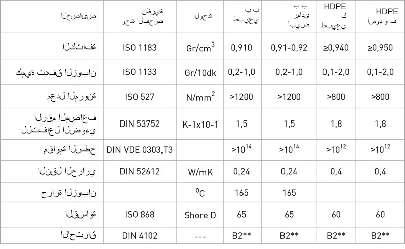 Fırat مشارك > صفائح PE-PP > لوحات PE فرات > خصائص المواد