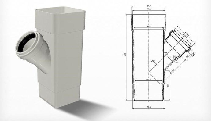 انحناء أنبوب نازل 45°