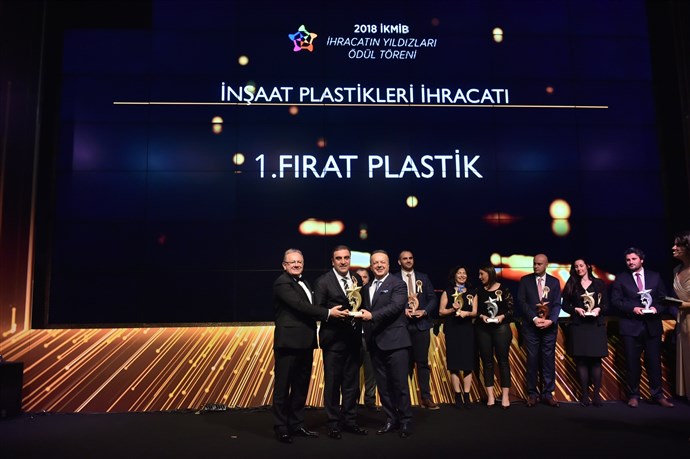 İKMİB İhracatın Yıldızları Ödül Töreni 28 kategoride ilk 3’e giren firmalar arasında gerçekleşti. İKMİB’e üye firmaları ihracattaki başarılarından dolayı onurlandırmak ve teşvik etmek amacıyla düzenlenen törende 2017 ve 2016 yıllarının inşaat plastikleri birincisi yine Fırat Plastik AŞ idi.