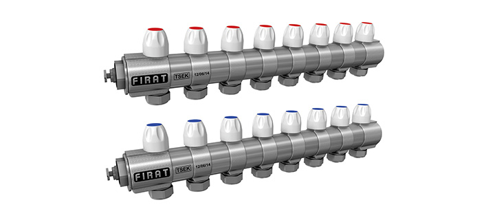 Коллекторы Fırat являются основными элементами системы, которая обеспечивает распределение и обратный сбор теплоносителя в системах теплых полов FIRAT PEX, мобильных системах отопления FIRAT PEX, системах питьевой воды FIRAT PEX и других аналогичных системах. Корпус и другие монтажные детали коллекторов Fırat изготавливаются из материала латунь MS58.